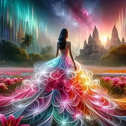 Vrouw met vlinderjurk